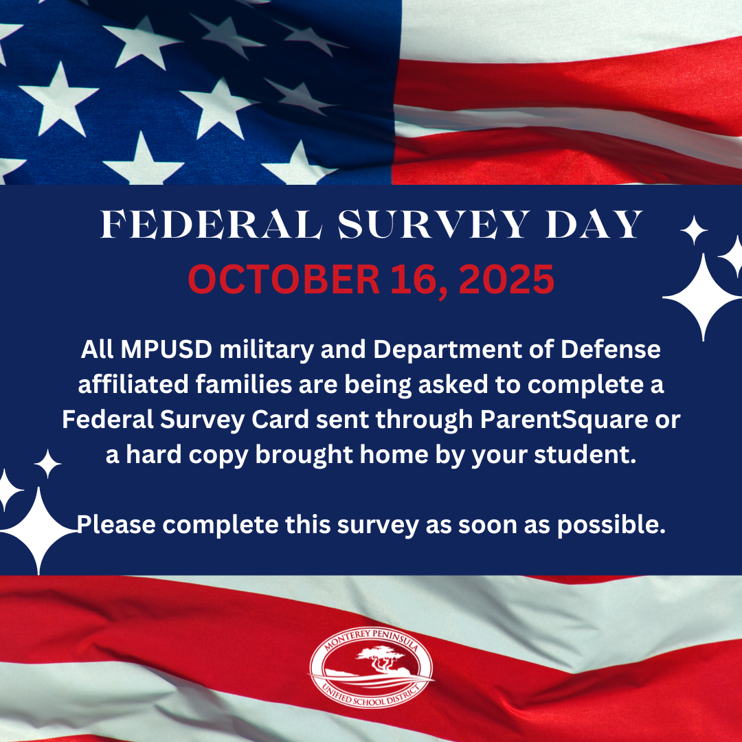 Thursday, October 16, 2025, is Federal Survey Day for our military-connected families in the Monterey Peninsula Unified School District.