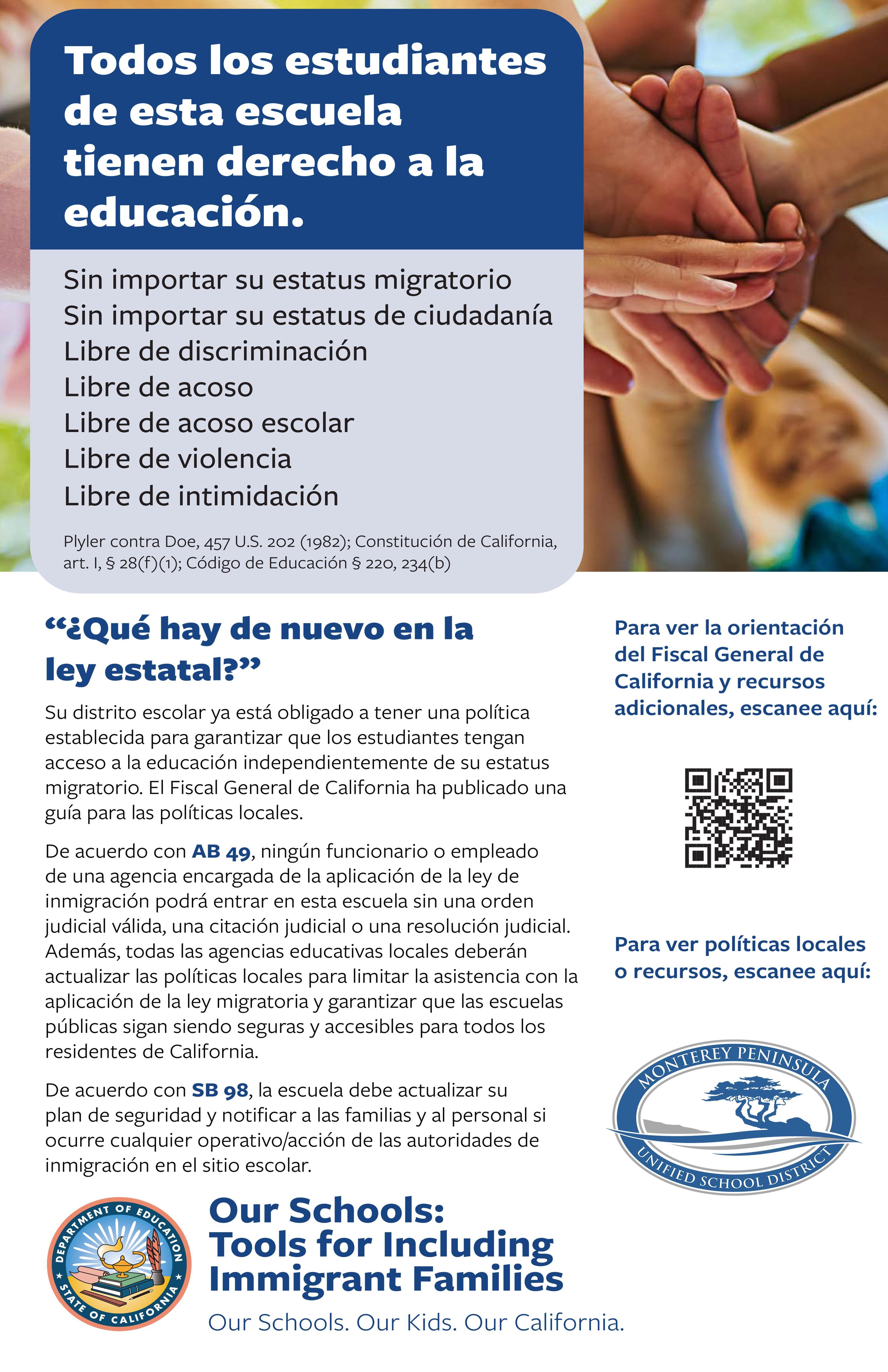 In accordance with new California law, Monterey Peninsula Unified School District has posted “Know Your Educational Rights” information at all school sites, administrative buildings, and on district and school websites as of January 1, 2026.