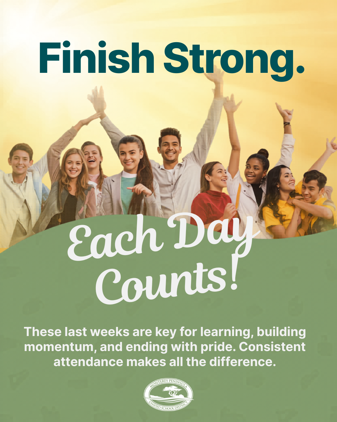 Our shared goal is for every student to finish the year strong and stay on track. We’re cheering our students on and appreciate your partnership in helping them show up, stay engaged, and make the most of every remaining school day.